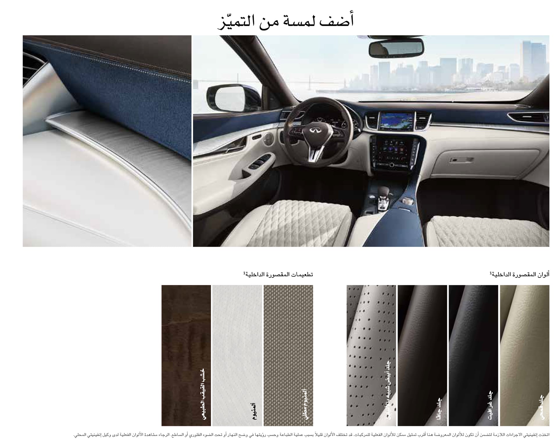 تتطابق شخصية QX50 القوية والديناميكية مع المقصورة الداخلية الفسيحة والمثيرة للإعجاب. لقد صممت بعناية كبيرة لتركز عليك وتتكيف مع احتياجاتك.